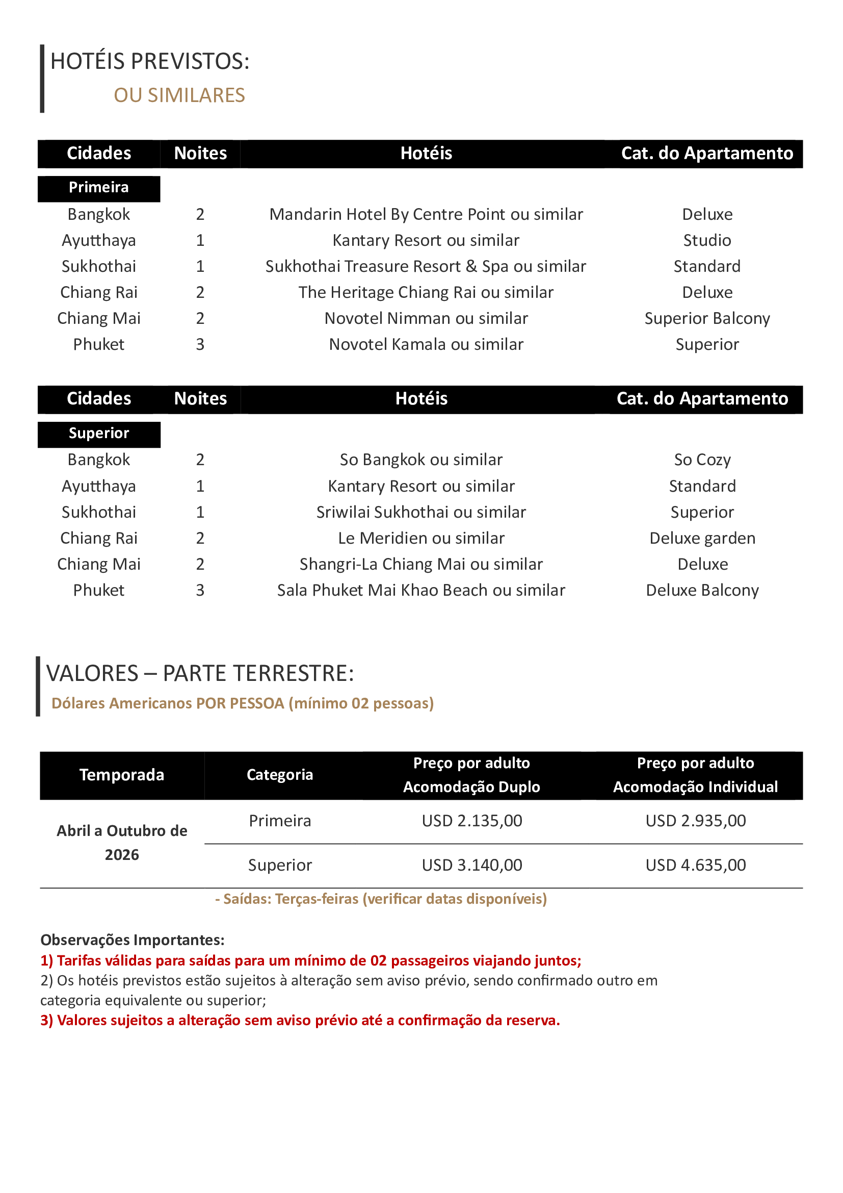4) Importante ressaltar que dentro da validade de cada tarifa informada, a data do check-out deve coincidir com a última data de validade do período;