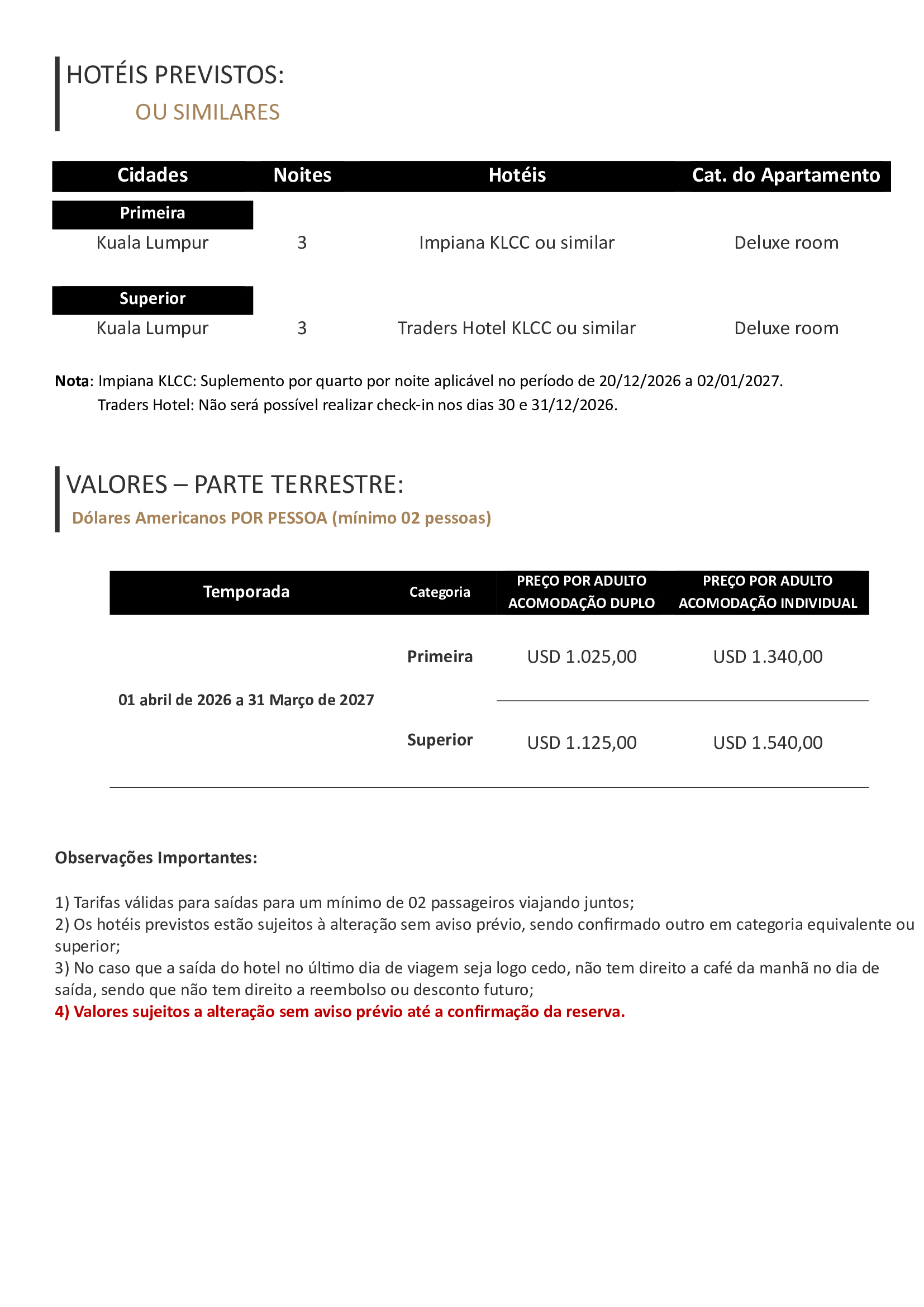 4) Importante ressaltar que dentro da validade de cada tarifa informada, a data do check-out deve coincidir com a última data de validade do período;