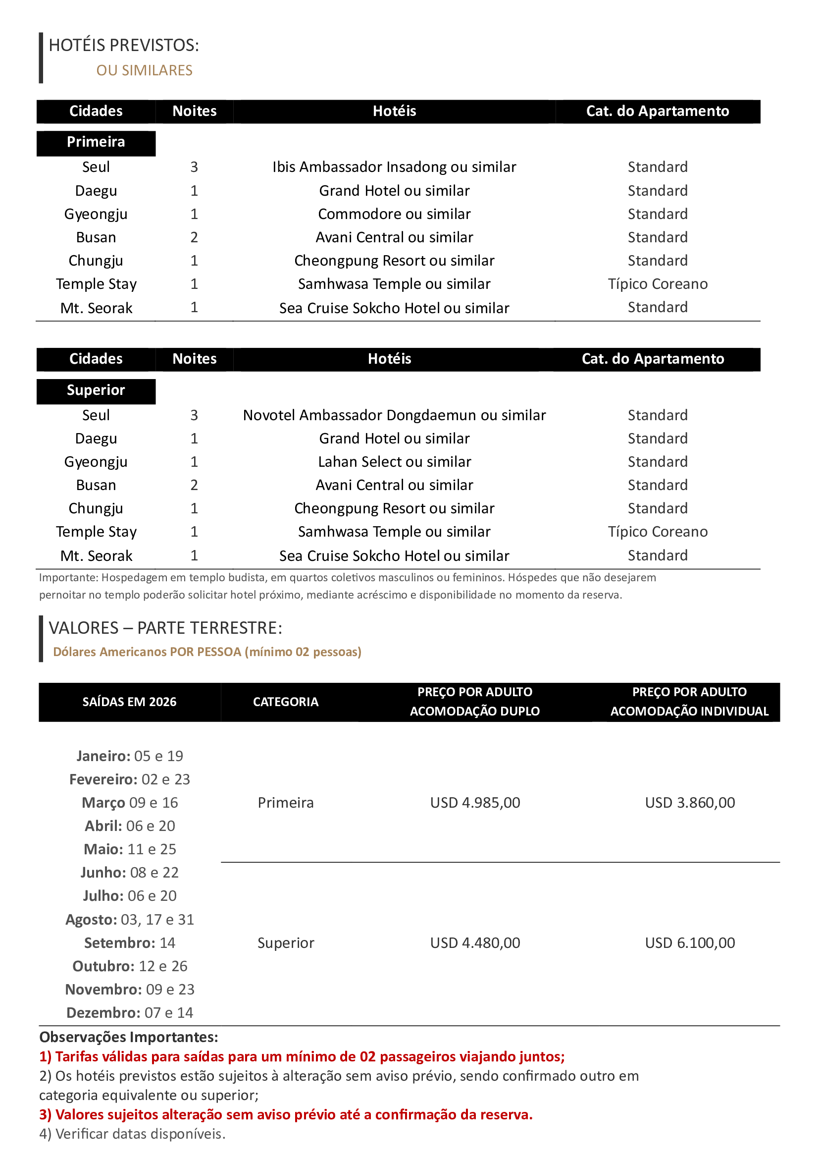 4) Importante ressaltar que dentro da validade de cada tarifa informada, a data do check-out deve coincidir com a última data de validade do período;