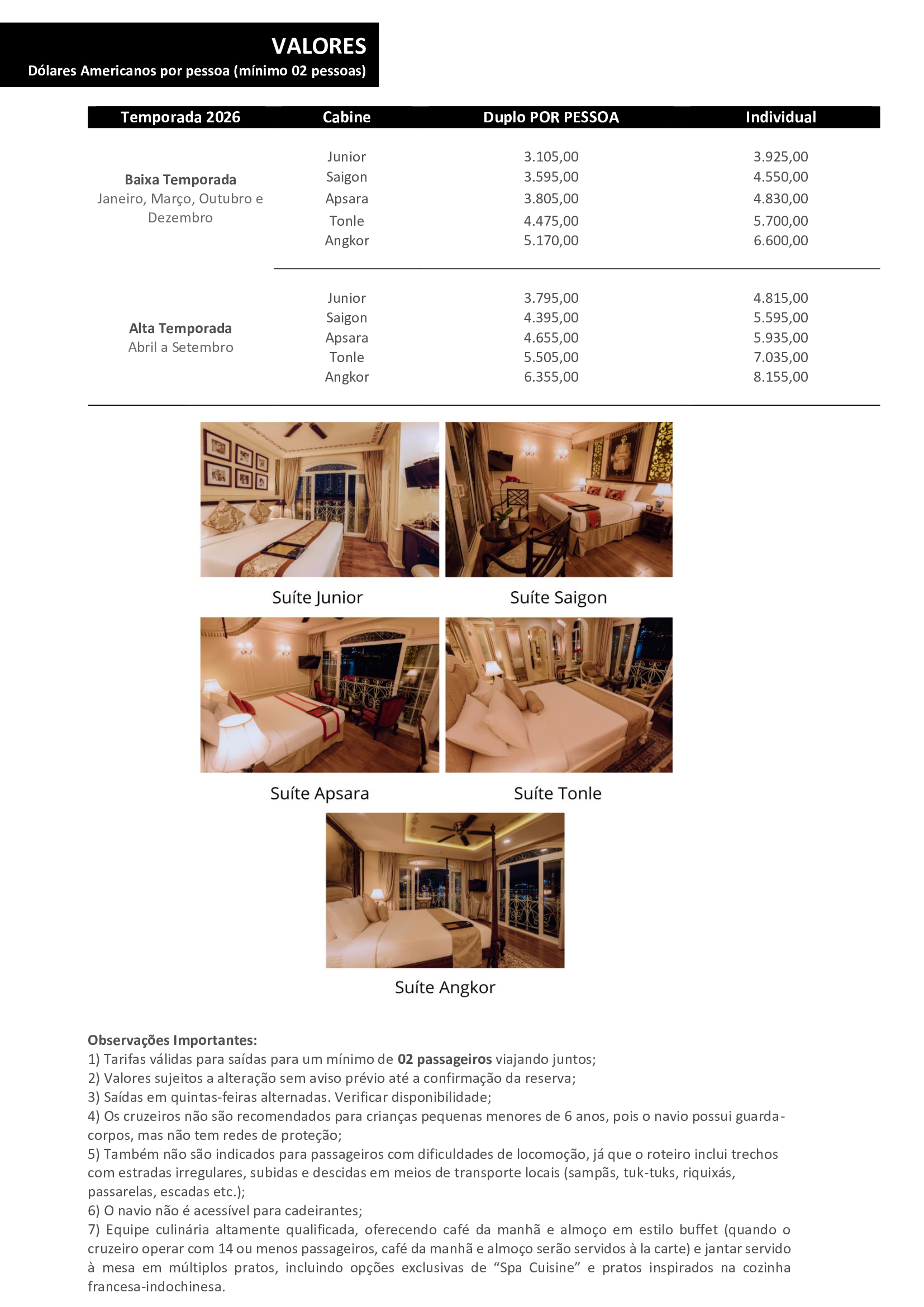 4) Importante ressaltar que dentro da validade de cada tarifa informada, a data do check-out deve coincidir com a última data de validade do período;