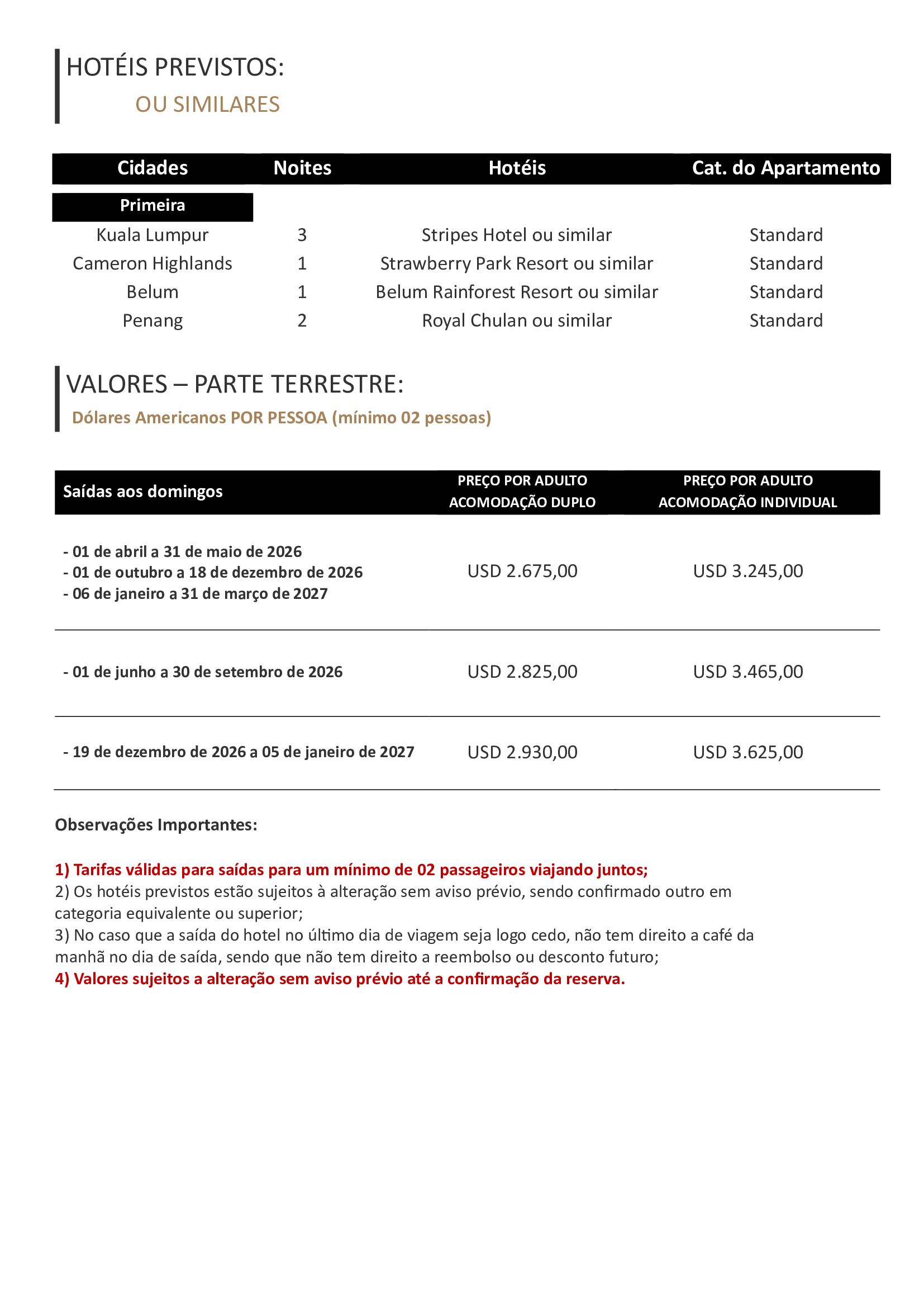 4) Importante ressaltar que dentro da validade de cada tarifa informada, a data do check-out deve coincidir com a última data de validade do período;