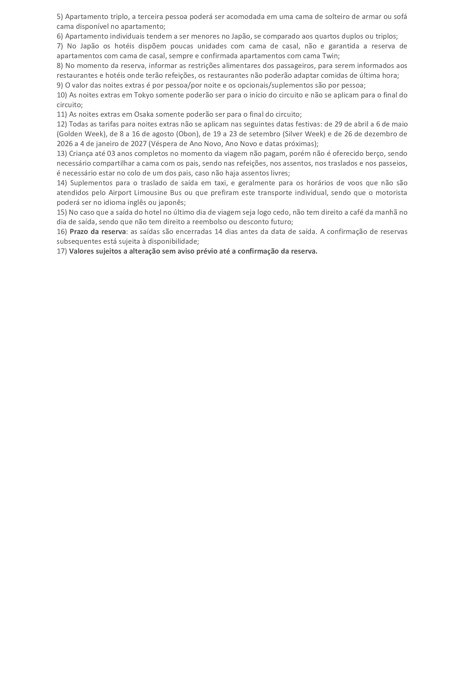 4) Importante ressaltar que dentro da validade de cada tarifa informada, a data do check-out deve coincidir com a última data de validade do período;